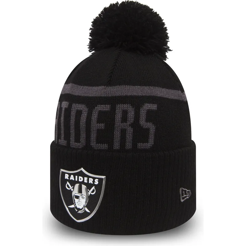Μαύρος σκούφος με πομπόν Cuff Knit Coll των Las Vegas Raiders NFL από τη New Era