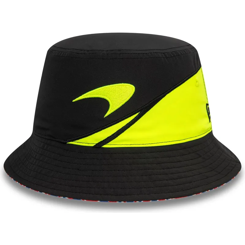 Η ομάδα της McLaren Racing ξεχωρίζει για τη μακρά ιστορία της στον κόσμο των αγώνων αυτοκινήτων, όντας μία από τις πιο εμβληματικές και αναγνωρισμένες στην ιστορία της Formula 1. Το μαύρο και κίτρινο καπάκι Silverstone Lando Norris Bucket από τη McLaren Racing Formula 1 New Era αποτίει φόρο τιμής σε αυτή τη θρυλική ομάδα, με το χαρακτηριστικό μαύρο και κίτρινο χρώμα που τονίζει το λογότυπο της McLaren στο μπροστινό μέρος.
