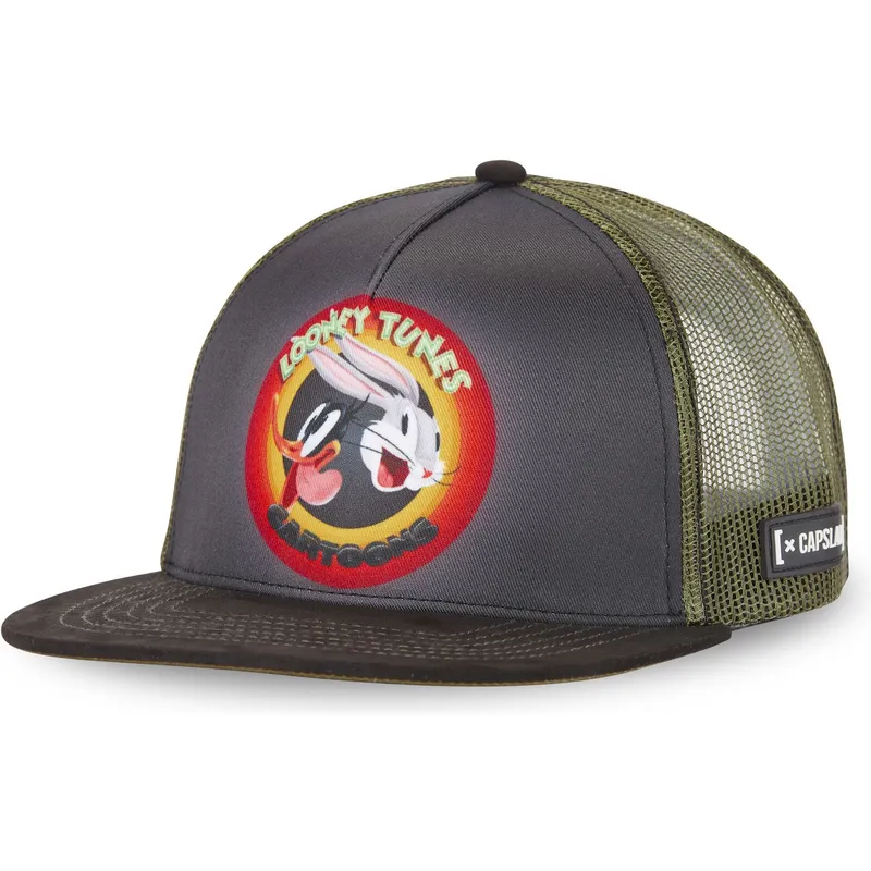 Το Capslab LOO8 RIN Bugs Bunny and Daffy Duck, γκρι και πράσινο επίπεδο καπέλο φορτηγού είναι ένα απαραίτητο αξεσουάρ για κάθε ενήλικα που θεωρεί τον εαυτό του θαυμαστή των Looney Tunes. Με ένα unisex σχέδιο που συνδυάζει τέλεια γκρι και πράσινα χρώματα, αυτό το καπάκι snapback είναι ιδανικό για να ολοκληρώσει κάθε casual ντύσιμο με μια διασκεδαστική και πρωτότυπη πινελιά.