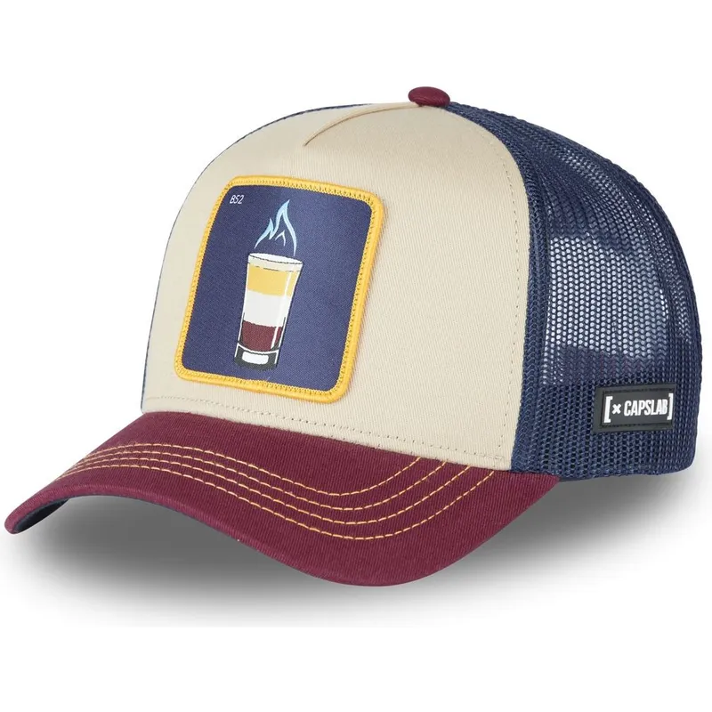 Το μπεζ, μπλε και κόκκινο καπάκι φορτηγού B52 Cocktails από την Capslab είναι η τέλεια επιλογή για όλους τους λάτρεις της αστικής μόδας και του casual στυλ. Με unisex σχέδιο και κλείσιμο Snapback, αυτό το καπάκι είναι ιδανικό για ενήλικες που αναζητούν ένα ευέλικτο και μοντέρνο αξεσουάρ για να συμπληρώσει τα ντυσίματά τους.