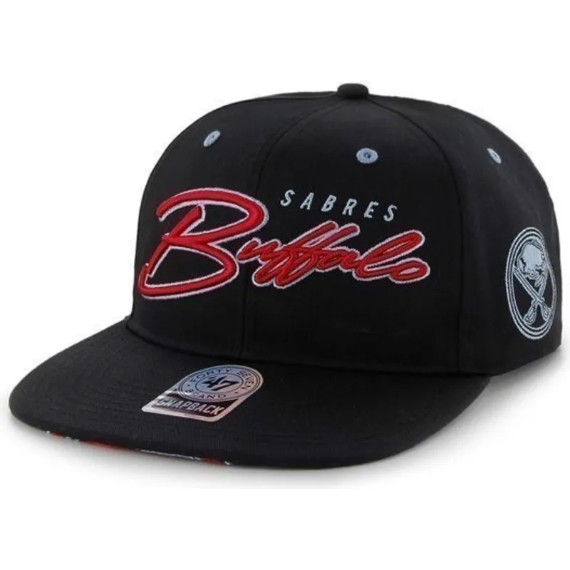 Μαύρο επίπεδο καπέλο snapback με λογότυπο γραμμάτων των Buffalo Sabres NHL από την 47 Brand