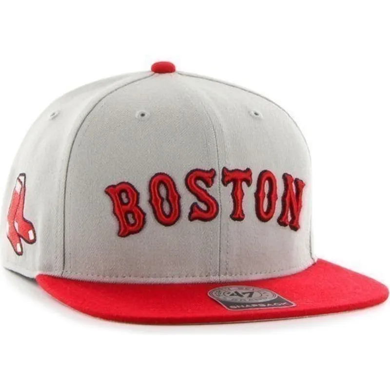 Γκρι επίπεδο snapback καπέλο με πλευρικό λογότυπο MLB Boston Red Sox από 47 Brand