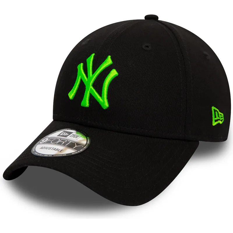 Ρυθμιζόμενο μαύρο καπέλο με κυρτό γείσο και πράσινο λογότυπο 9FORTY League Essential Neon των New York Yankees MLB από τη New Er