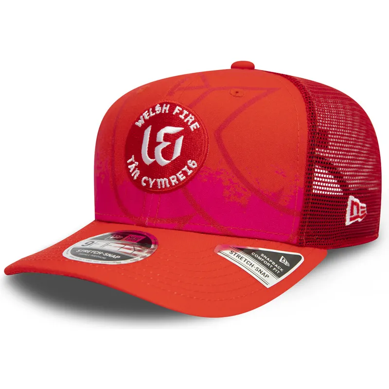 Κόκκινο καπέλο trucker 9FIFTY Stretch Snap All Over Print της Welsh Fire The Hundred από την New Era