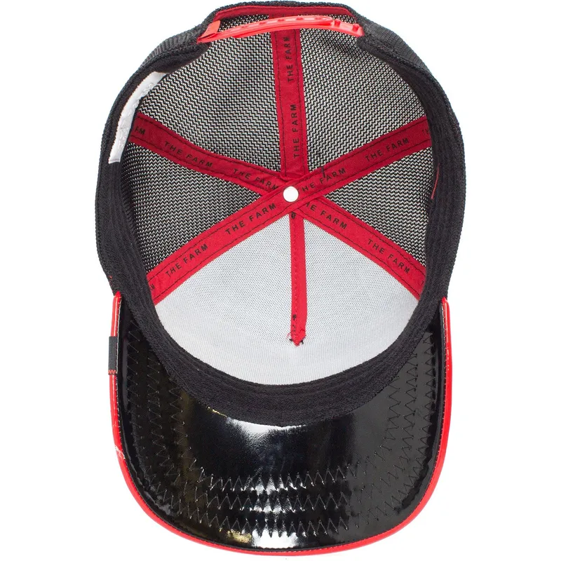 Καπέλο trucker μαύρο και κόκκινο κατσίκας G.O.A.T. Goaty McGoatFace Δερμάτινη Πατέντα The Farm από Goorin Bros.